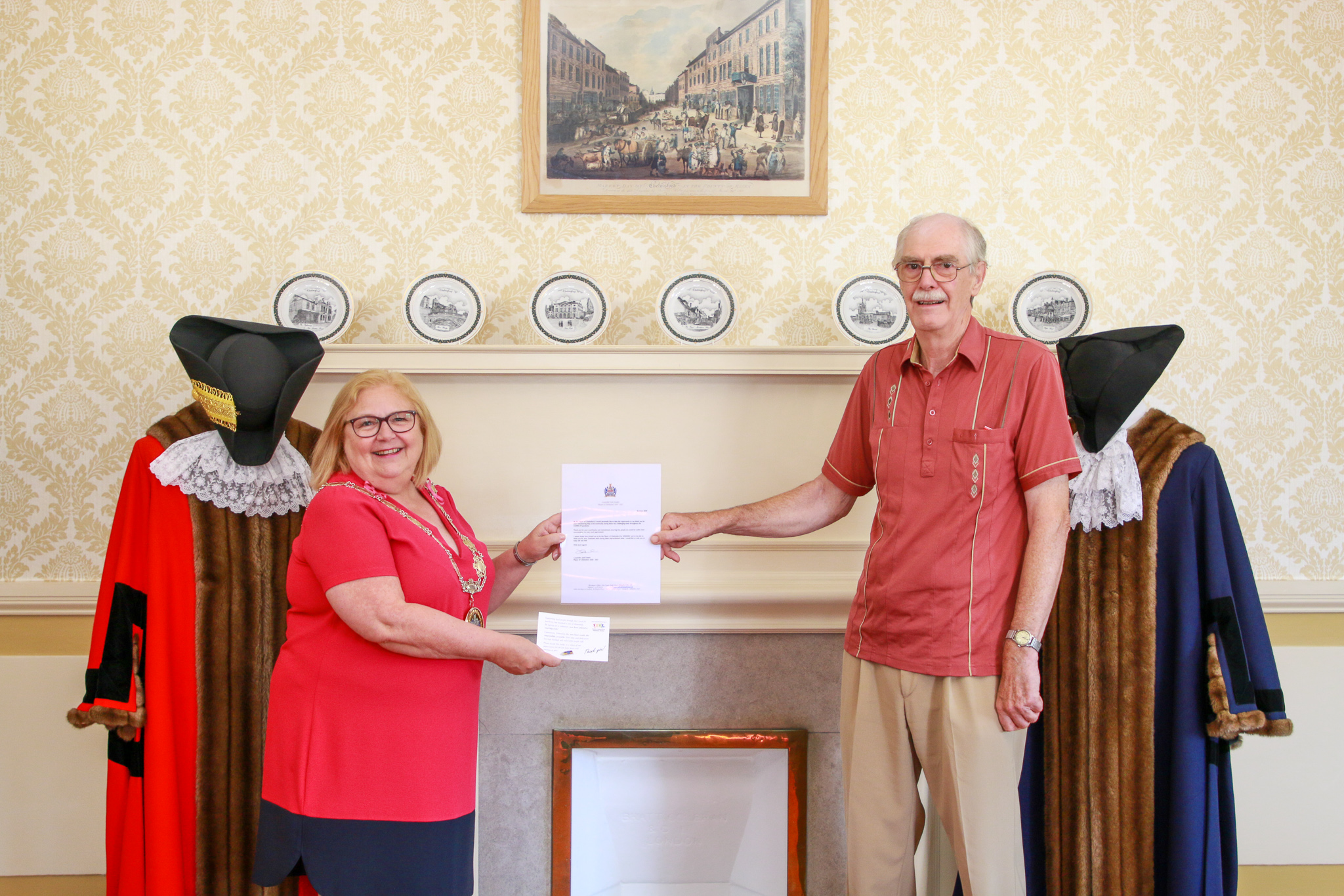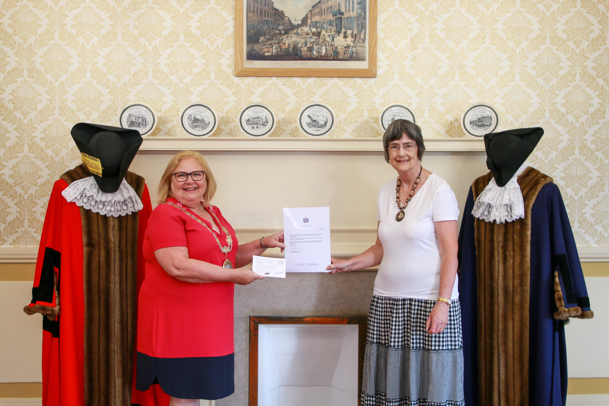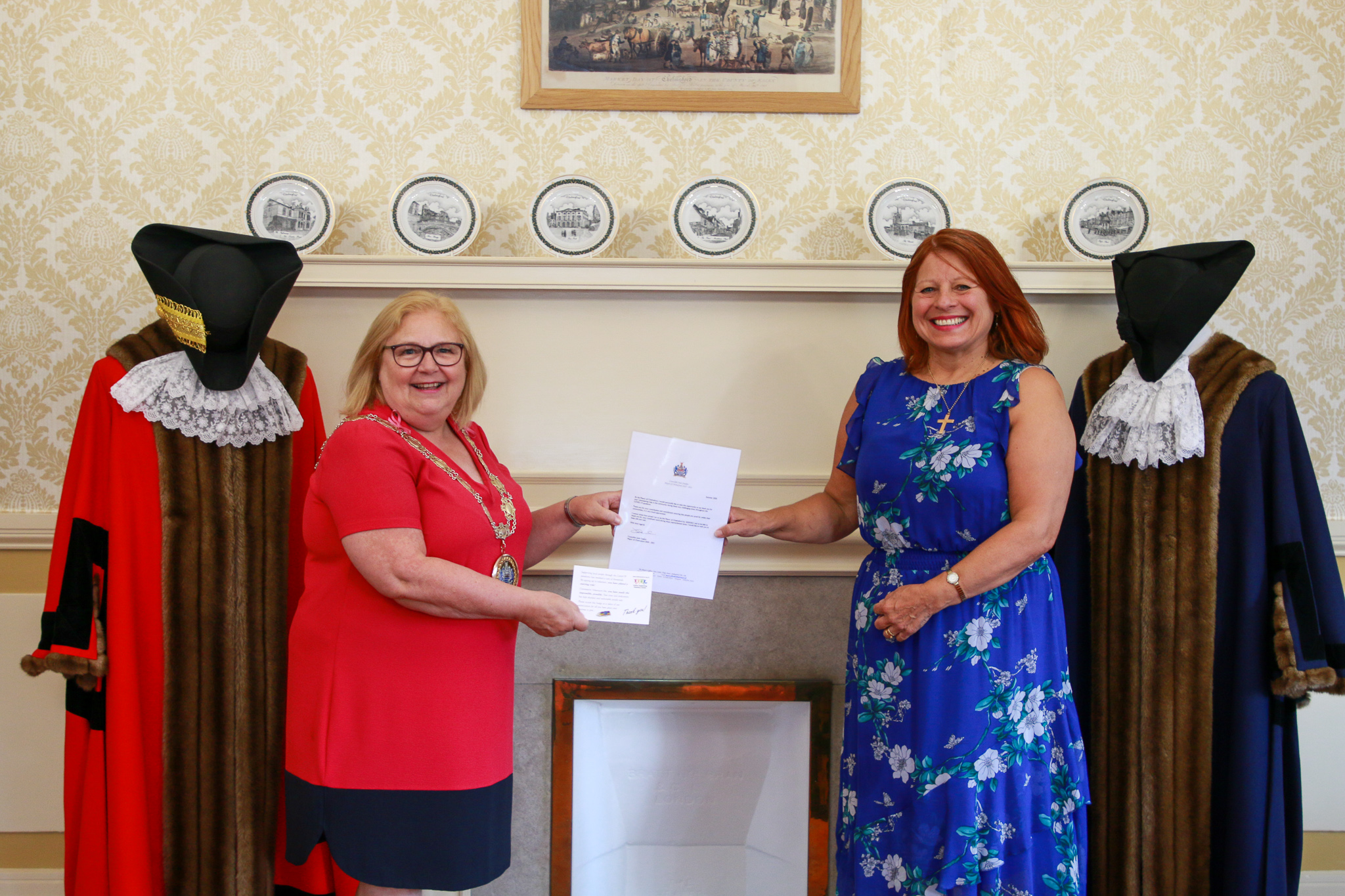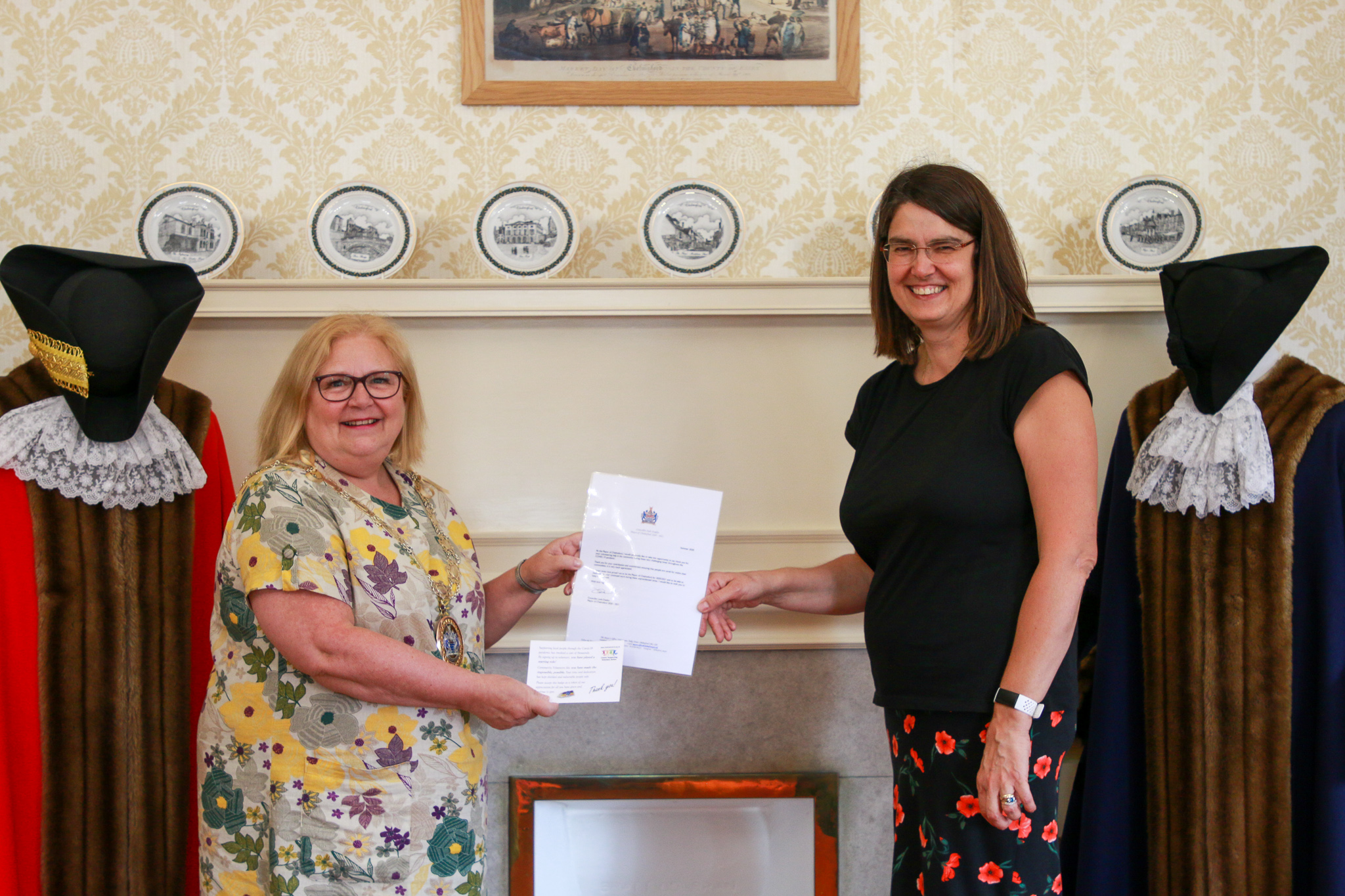 The Mayor of Chelmsford, Cllr Jude Deakin, surprised some local people in August with a doorstep visit to offer a personal thank you for volunteering for Chelmsford Community Resilience Hub. Hub volunteers were presented with letters from the Mayor and Lord Lieutenant, together with a card and specially designed Community Volunteer (CV) pin from Chelmsford CVS as a token of appreciation for all that they have given in these times.